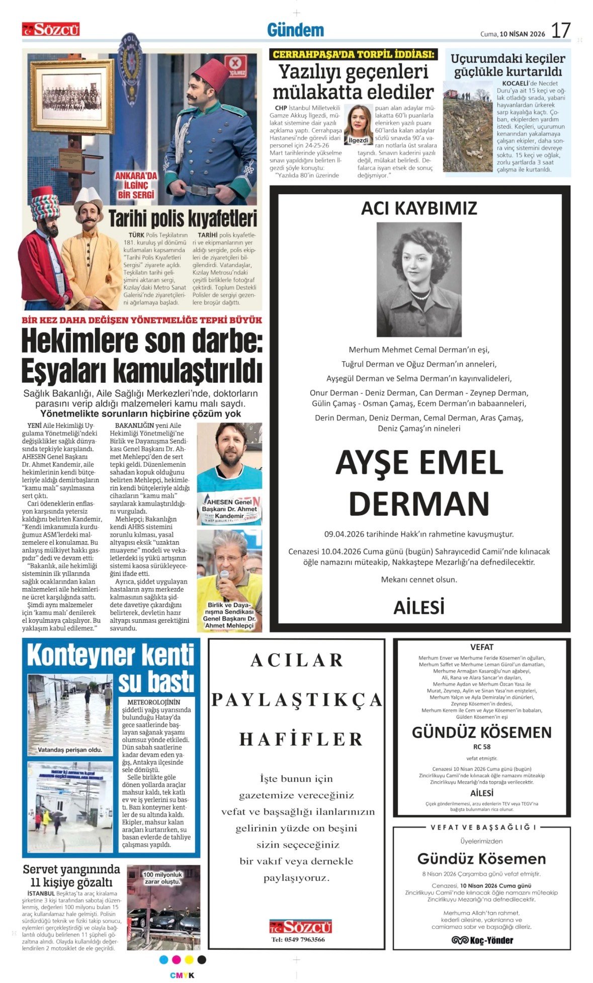 10 Nisan 2026 Sözcü Gazetesi vefat, başsağlığı ve anma ilanları. İlan vermek için 0533 504 01 01 numaralı hattı arayın.