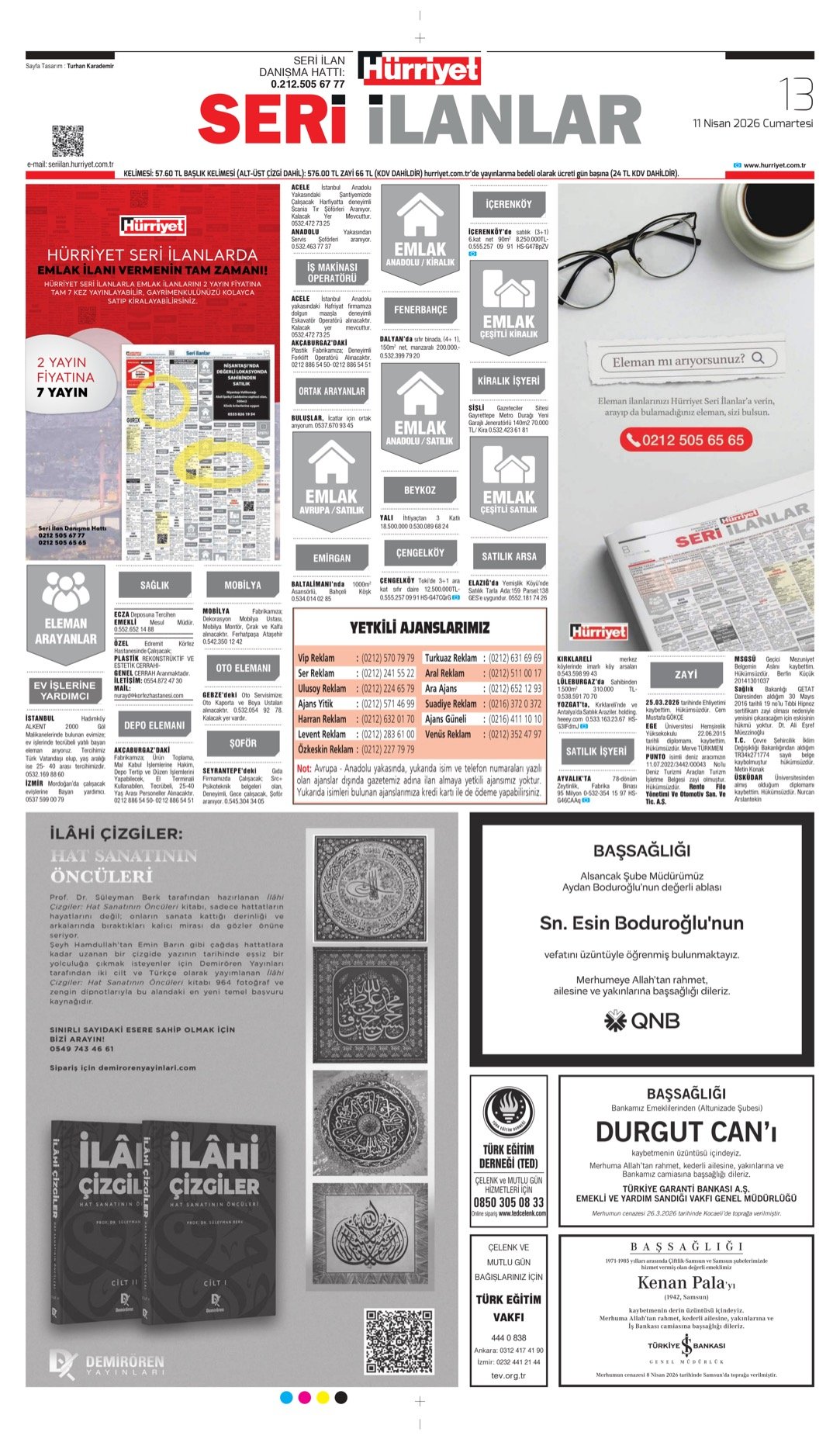 baskılarında ve diğer tüm baskılardaki ilanlar yayınlanmaktadır.