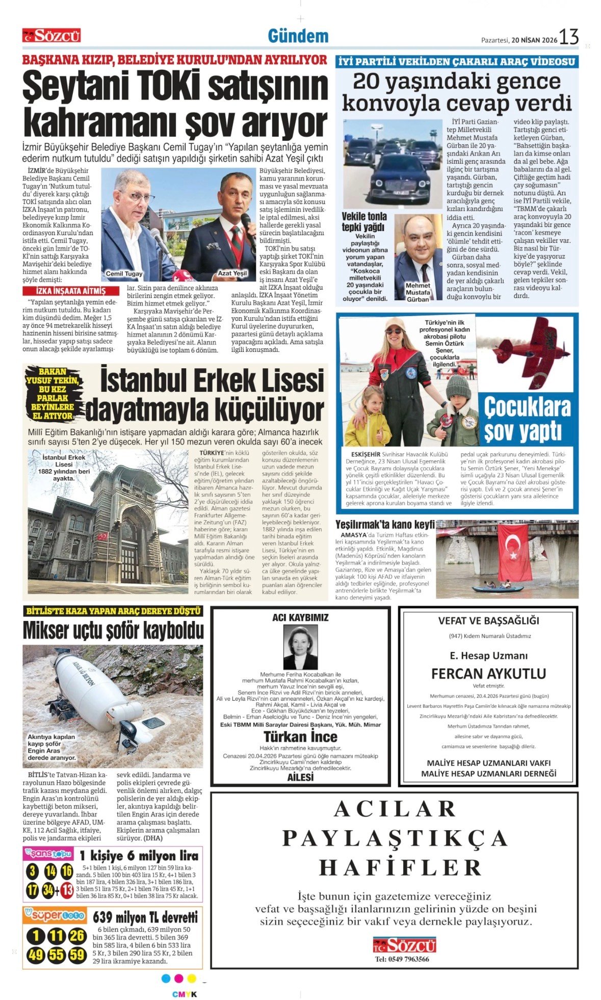 20 Nisan 2026 Sözcü Gazetesi vefat, başsağlığı ve anma ilanları.