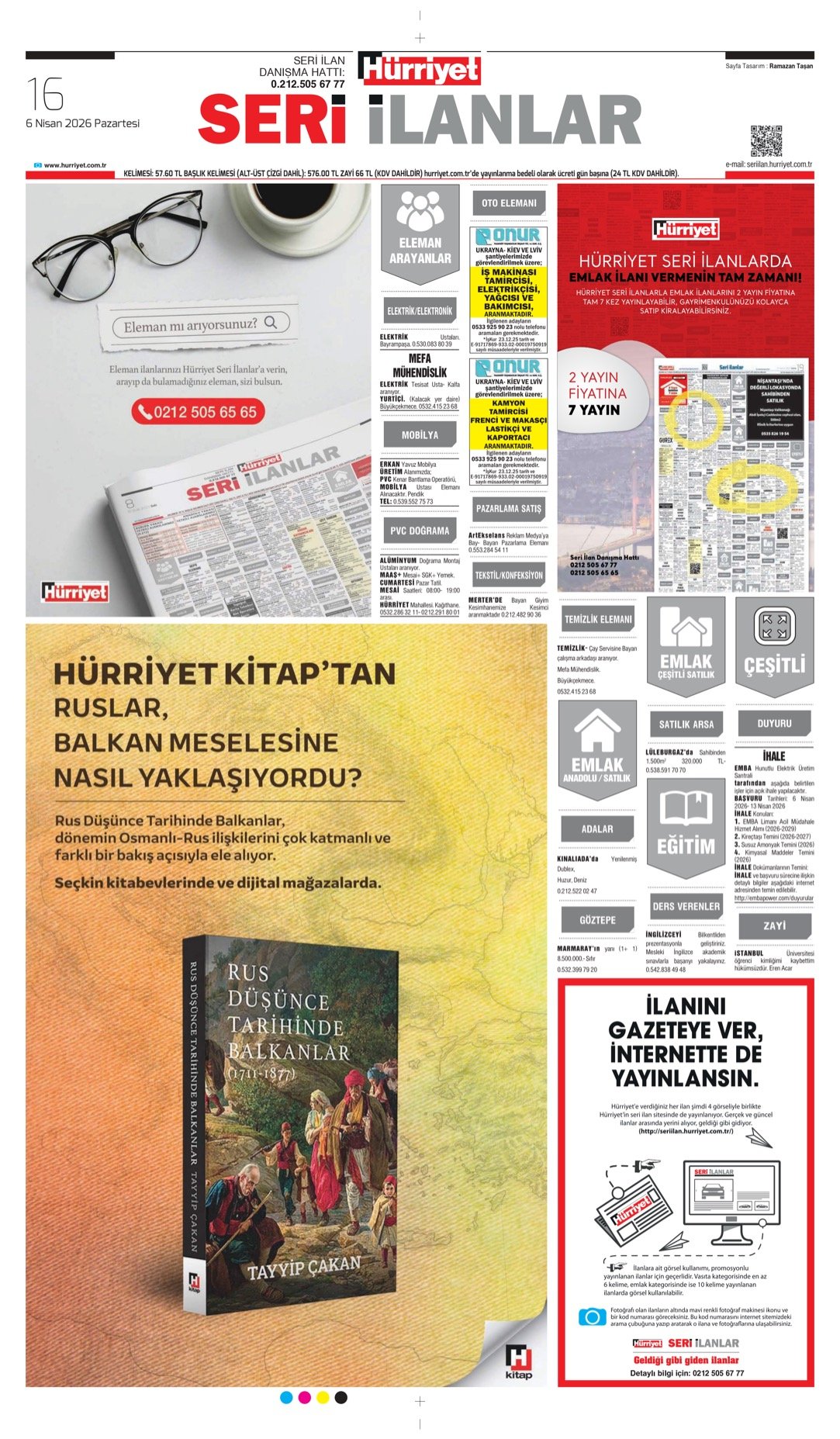 6 Nisan 2026 Hürriyet Gazetesi vefat, başsağlığı ve anma ilanları, seri ilanlar.