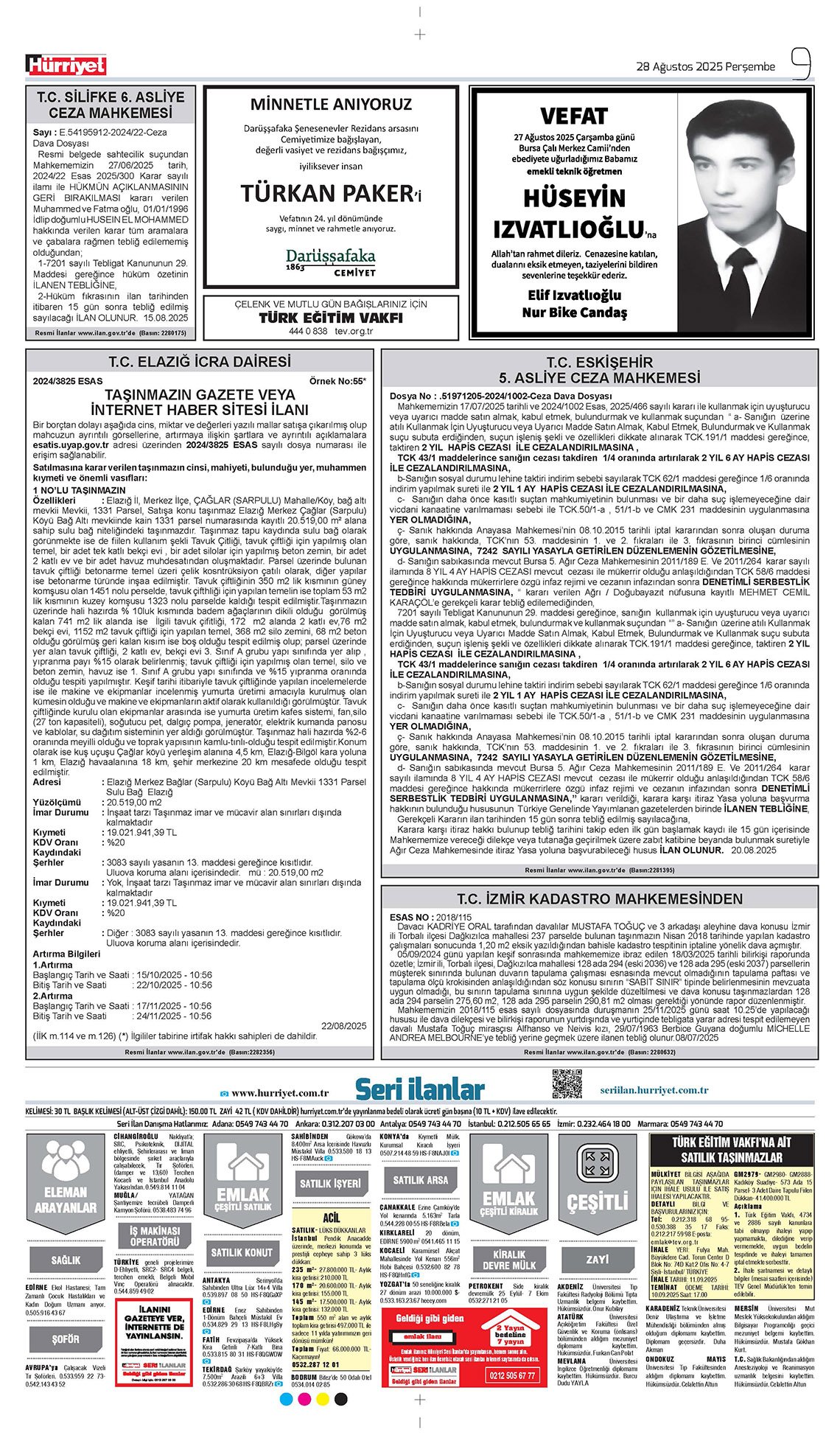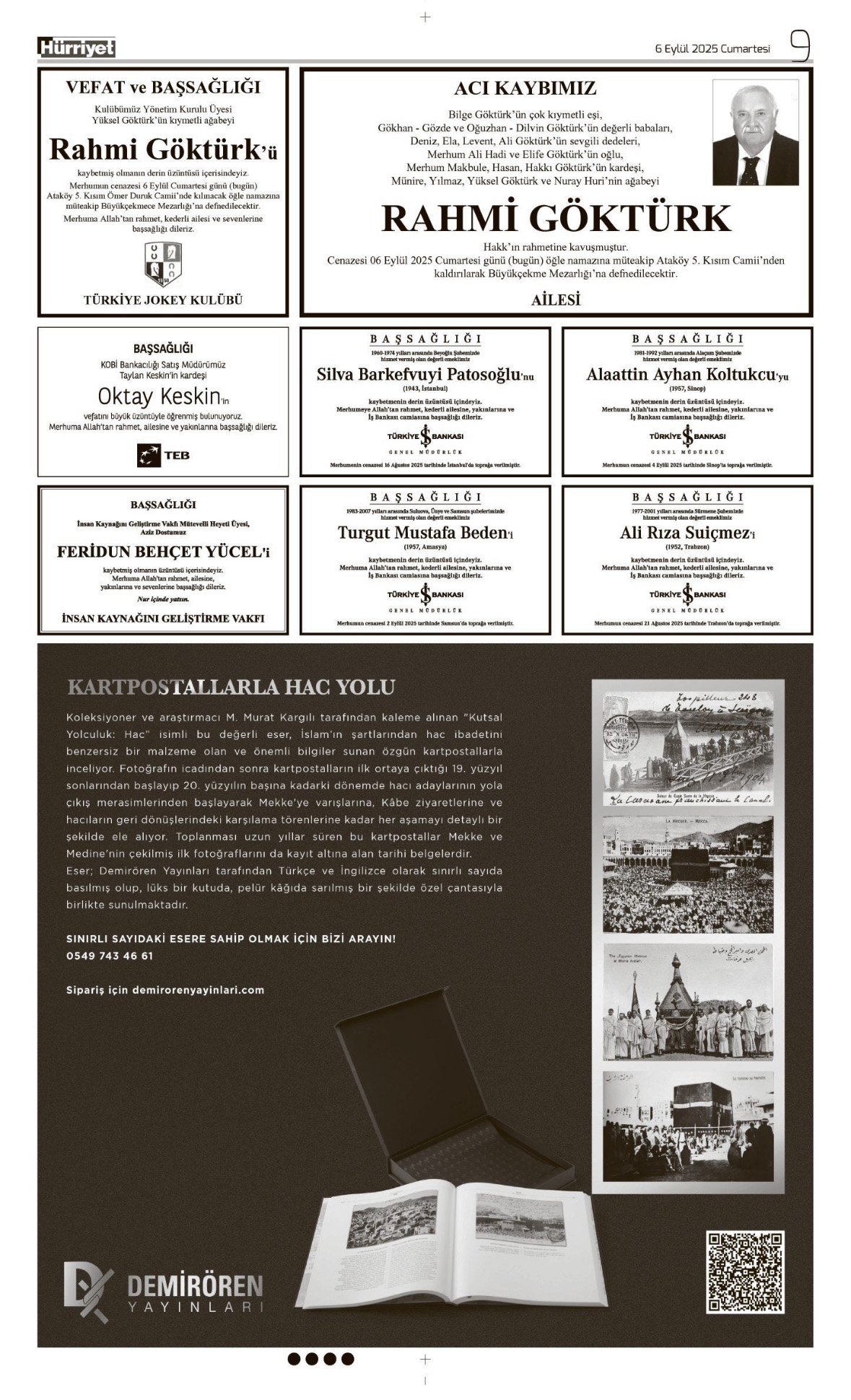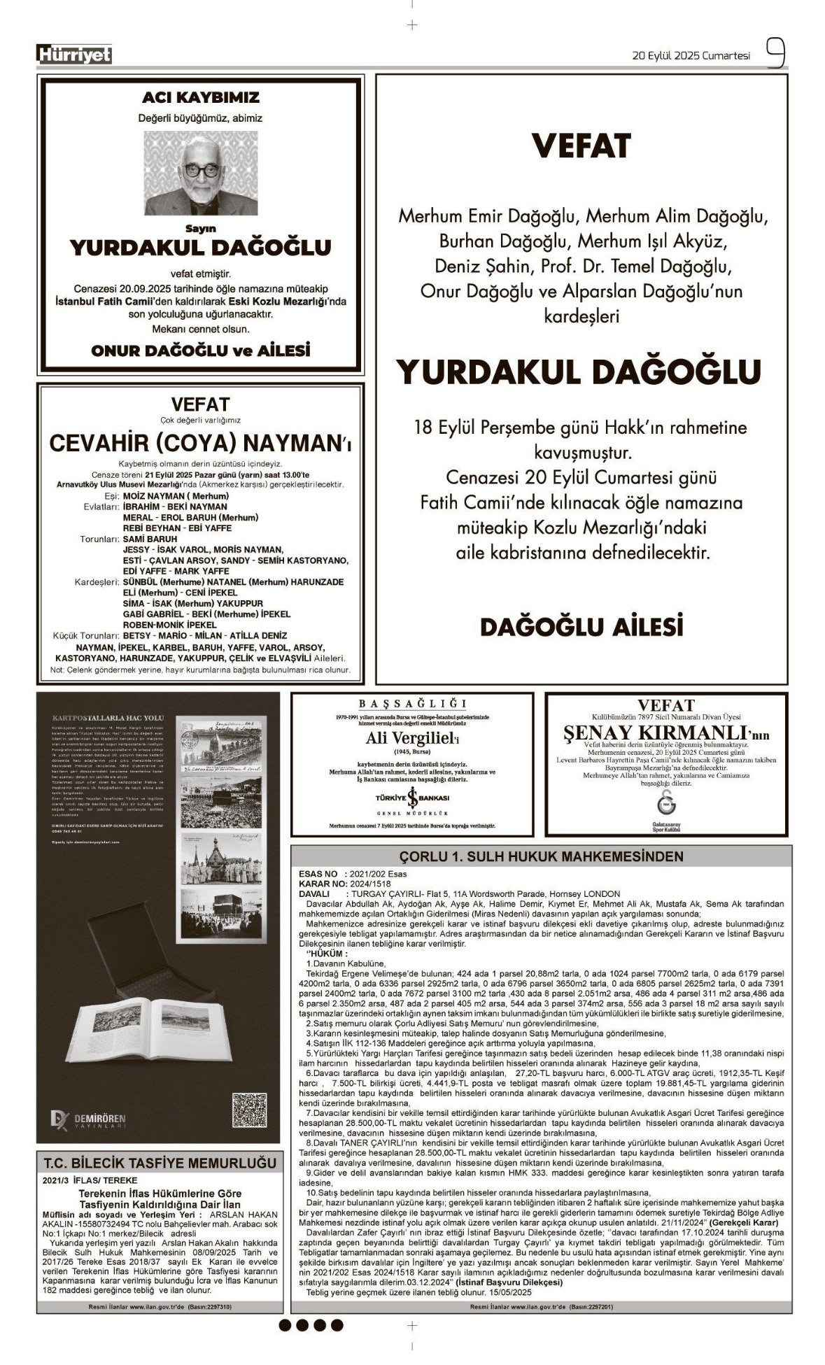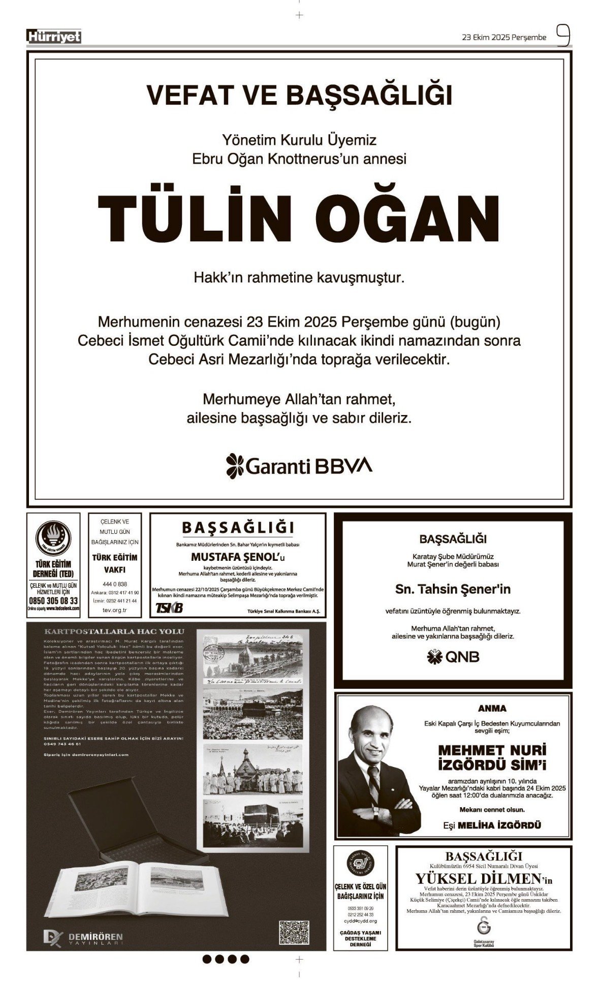 Hürriyet, Sözcü, Cumhuriyet Bugünkü vefat ilan sayfaları, vefat ilanı vermek ve bilgi almak için 7/24 bize ulaşabilirsiniz.
