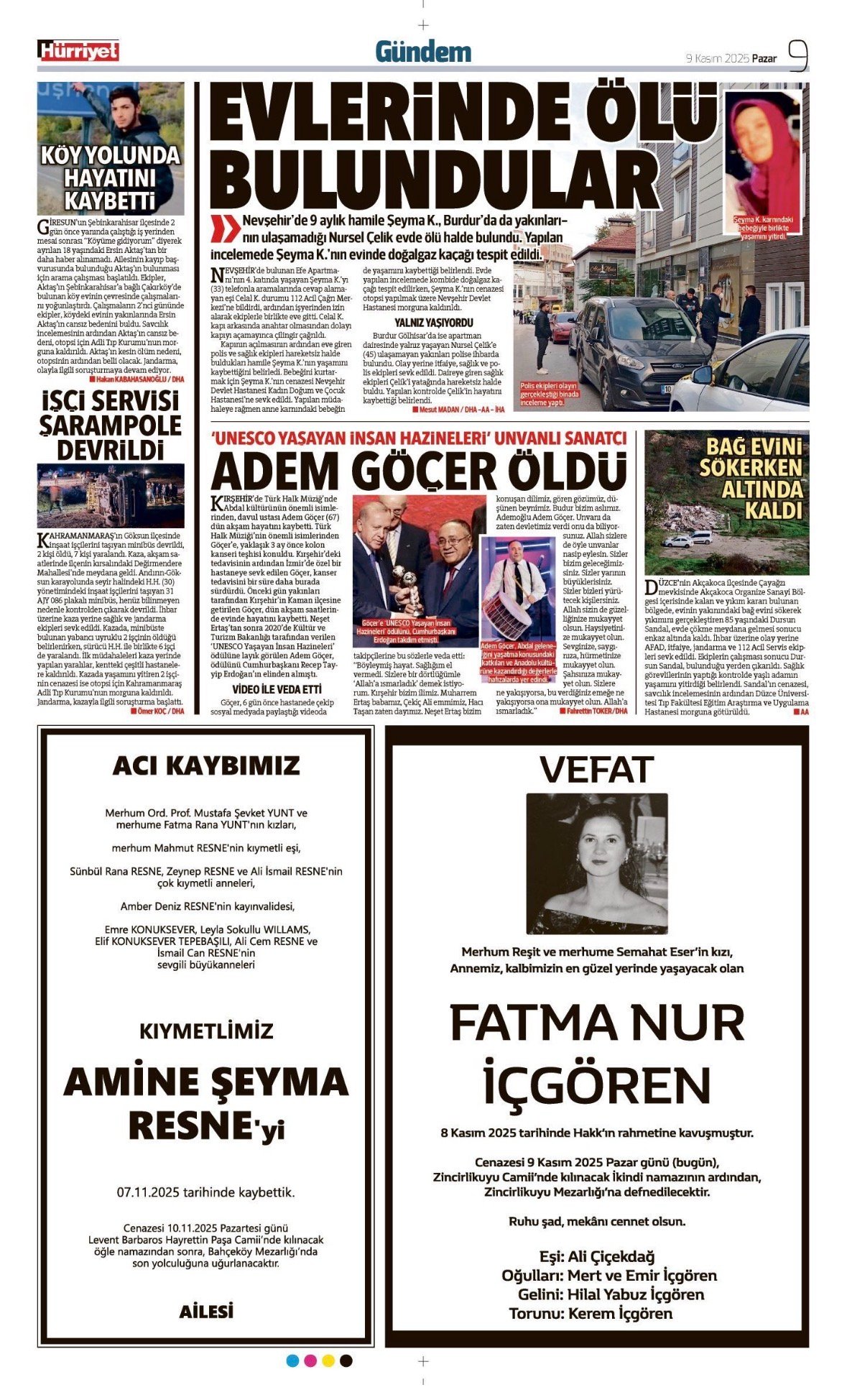 Hürriyet Bugünkü Vefat (Ölüm) – Başsağlığı – Anma – Teşekkür – Mevlit İlanları-9.11.2025