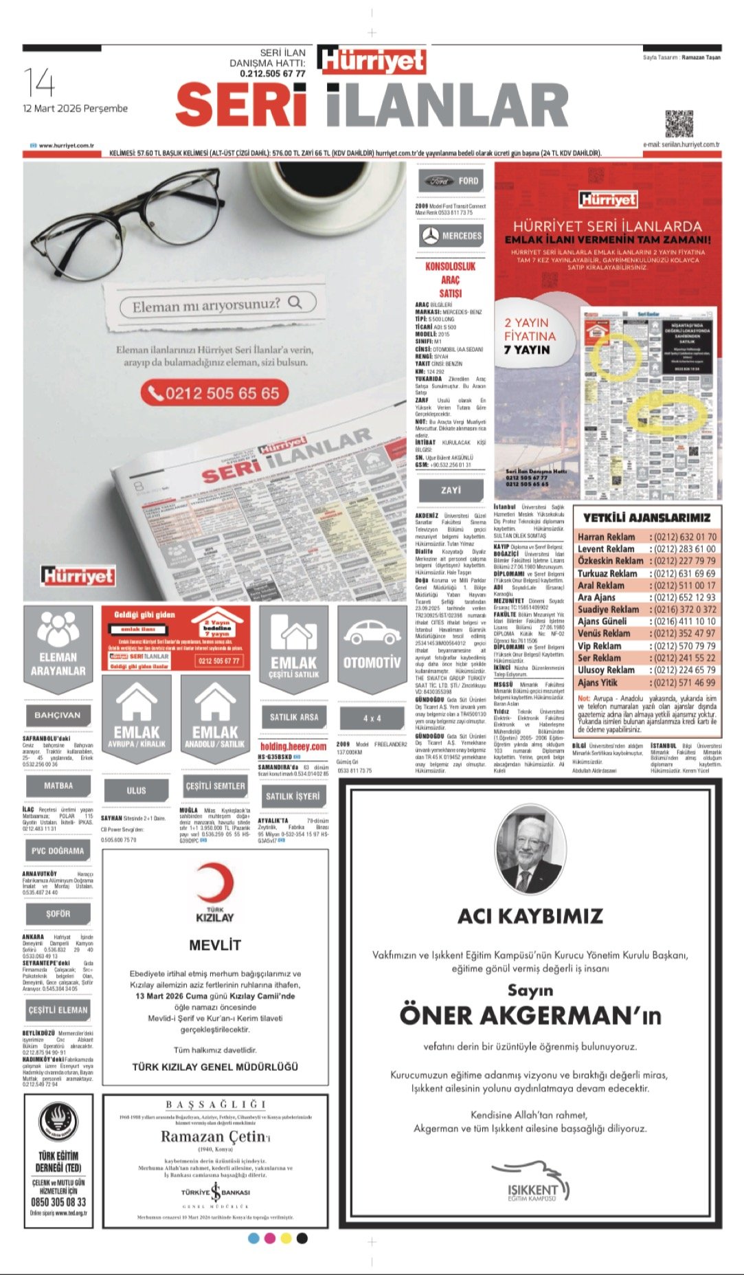 Hürriyet Bugünkü Vefat (Ölüm) – Başsağlığı – Anma – Teşekkür – Mevlit İlanları-12.3.2026-2