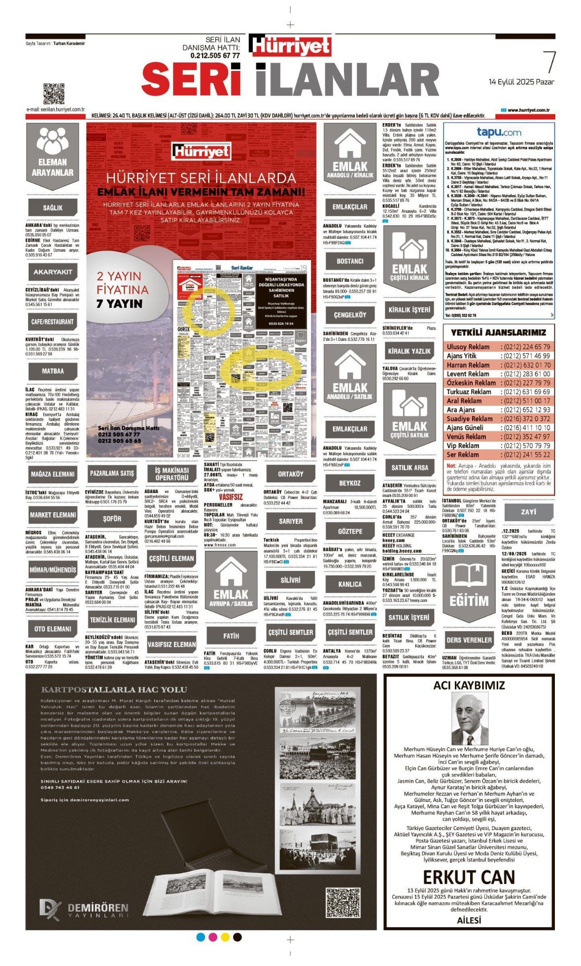 • HÜRRİYET VEFAT  İLAN SERVİSİ