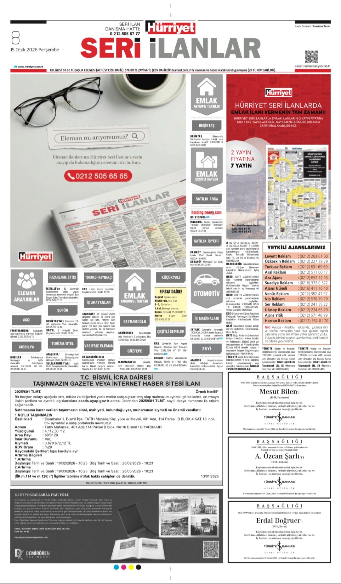 Hürriyet Bugünkü Vefat (Ölüm) – Başsağlığı – Anma – Teşekkür – Mevlit İlanları-15.1.2026