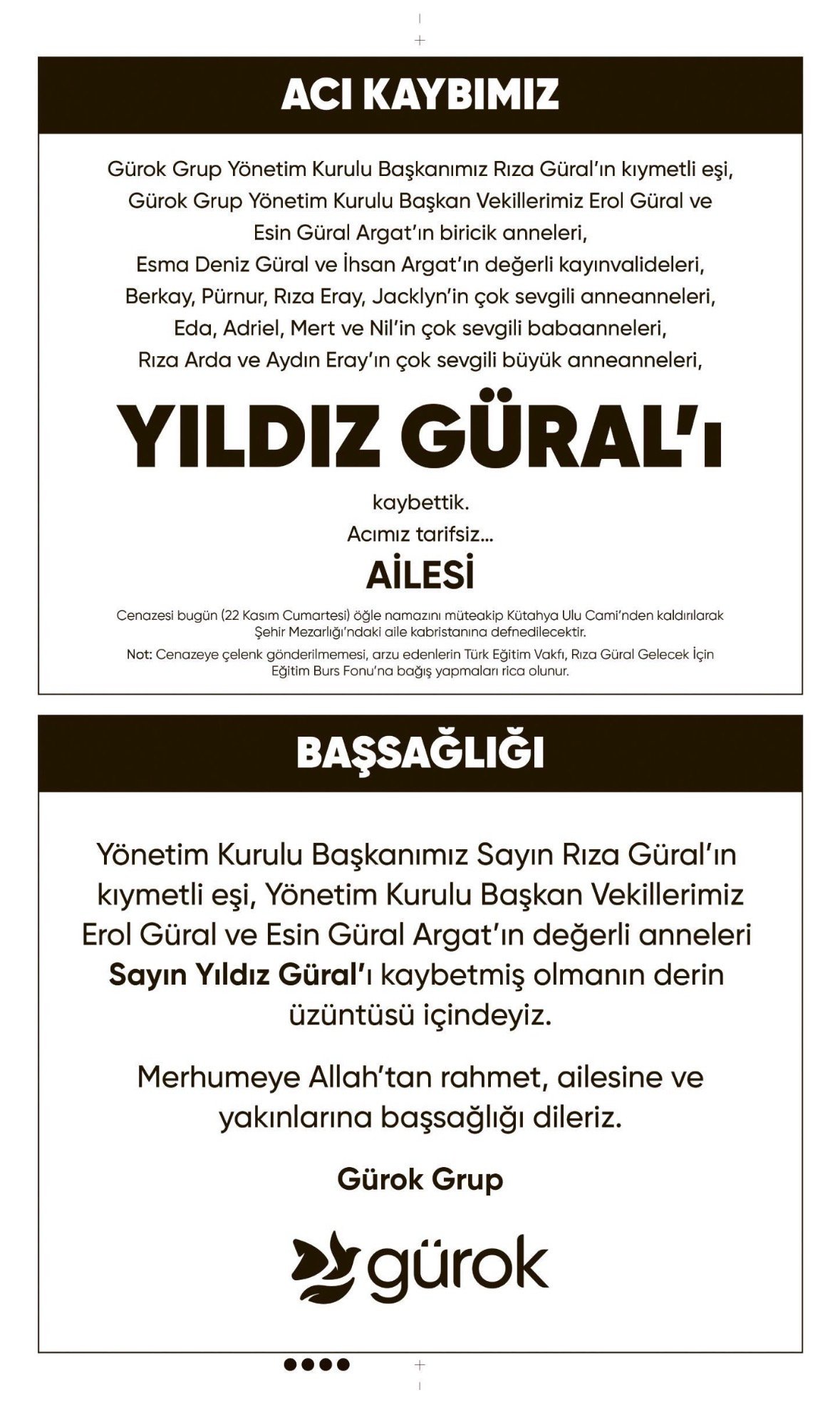 • YILDIZ GÜRAL – VEFAT İLANI,