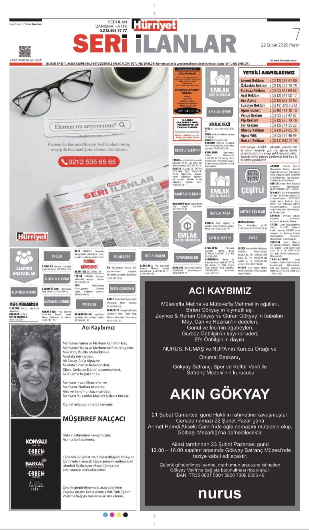 Hürriyet Bugünkü Vefat (Ölüm) – Başsağlığı – Anma – Teşekkür – Mevlit İlanları-22.2.2026