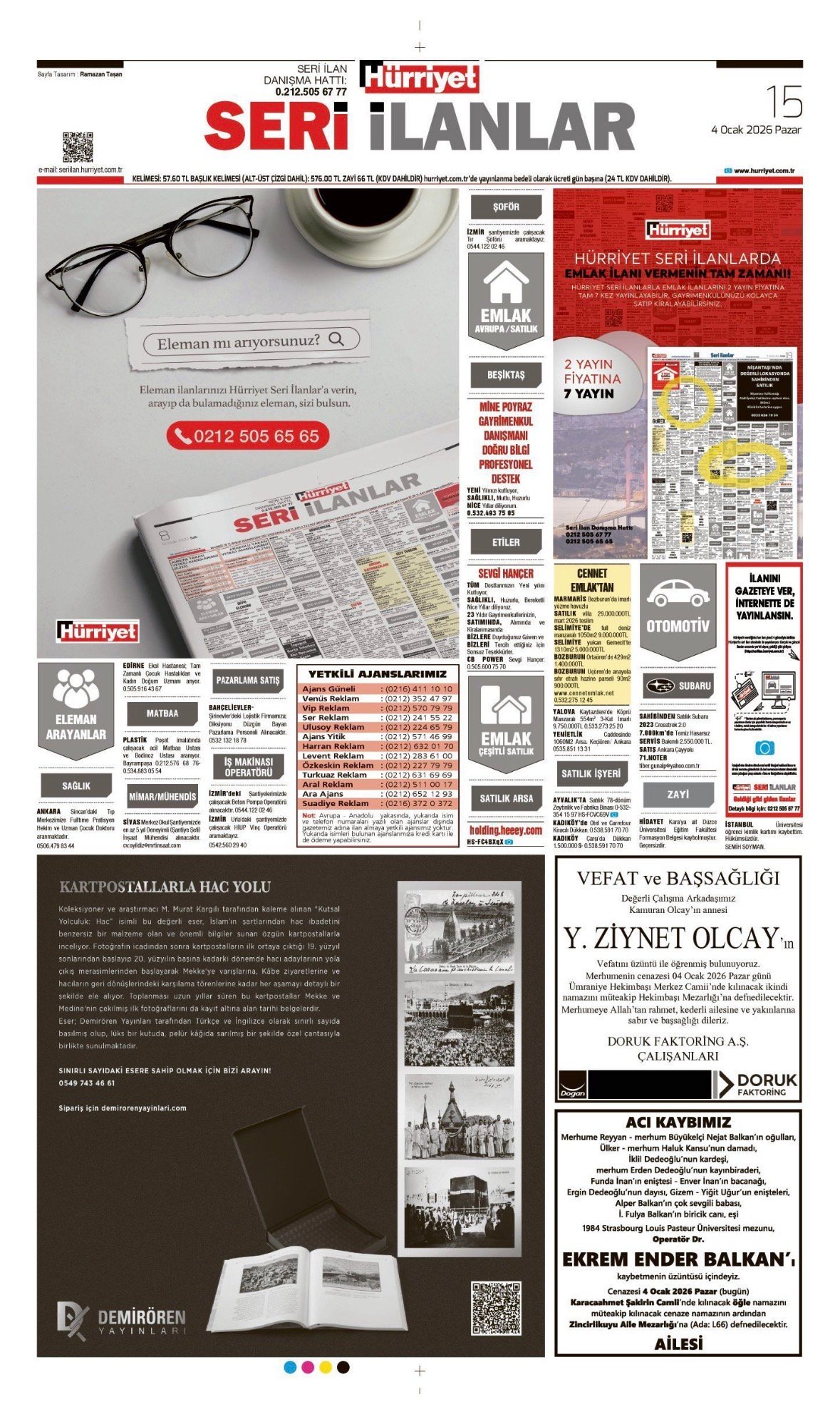 Hürriyet Bugünkü Vefat (Ölüm) – Başsağlığı – Anma – Teşekkür – Mevlit İlanları-4.1.2026