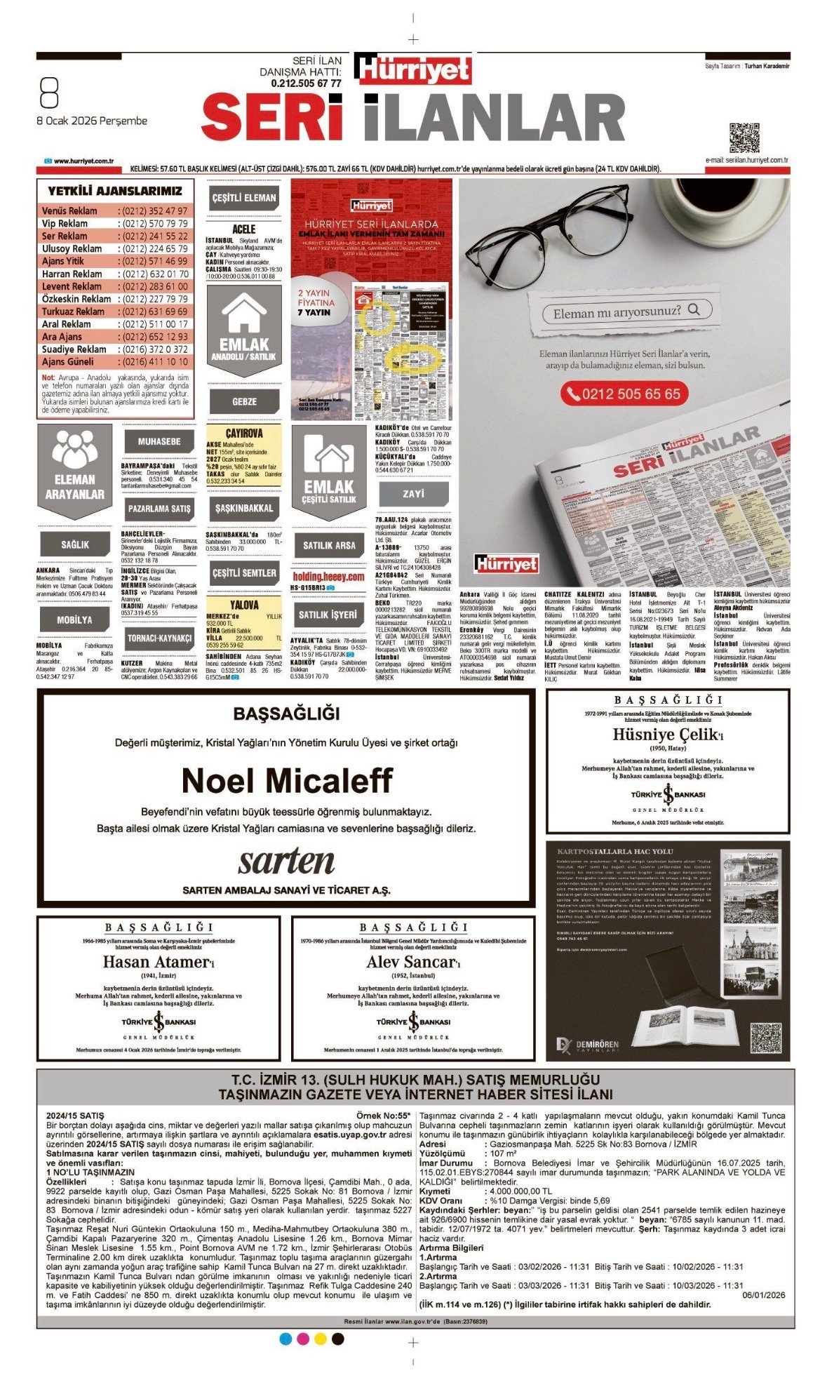 Hürriyet Bugünkü Vefat (Ölüm) – Başsağlığı – Anma – Teşekkür – Mevlit İlanları-8.1.2026