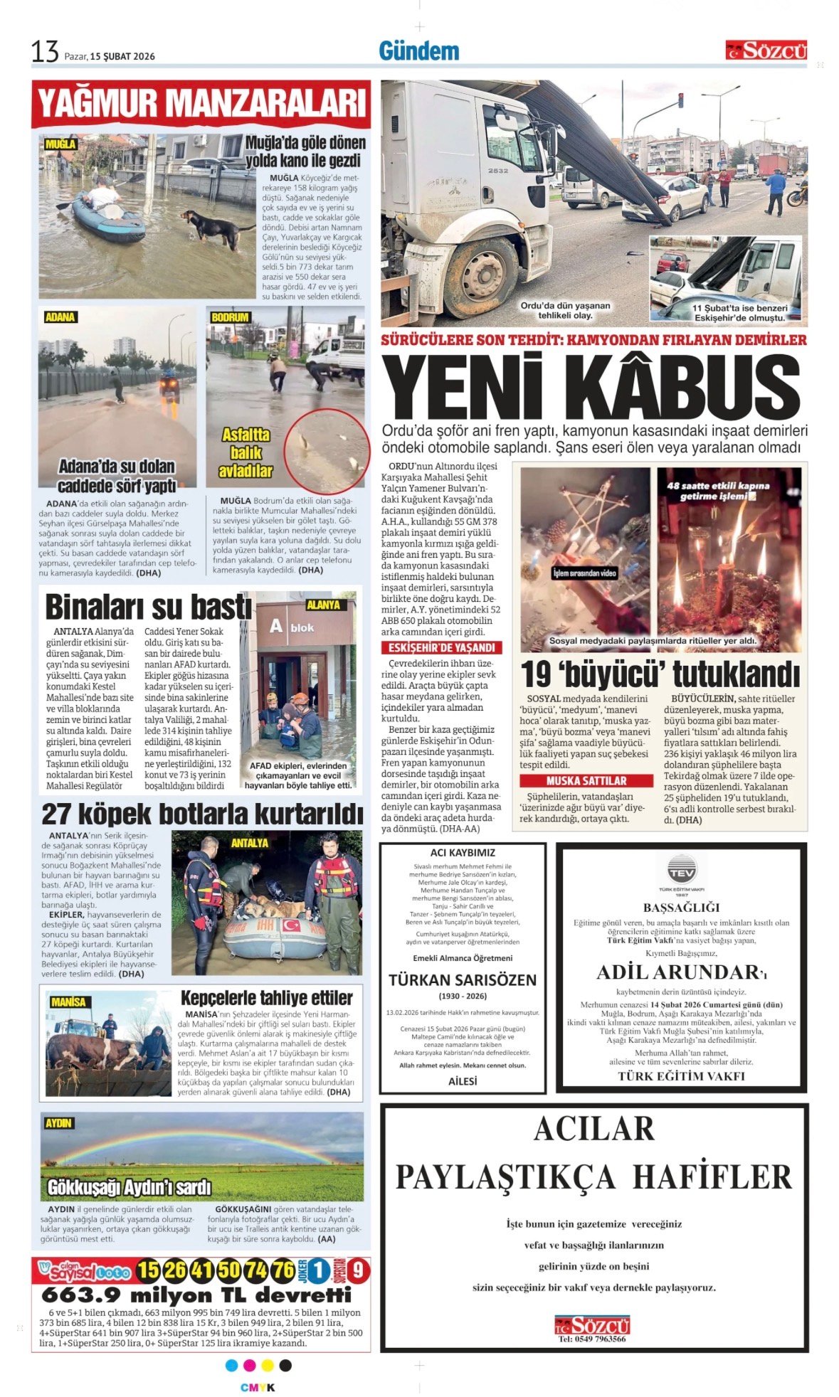 Sözcü Bugünkü Vefat İlan- Başsağlığı İlanı- Anma İlanları ve Arşiv Sayfalar. 15.2.2026