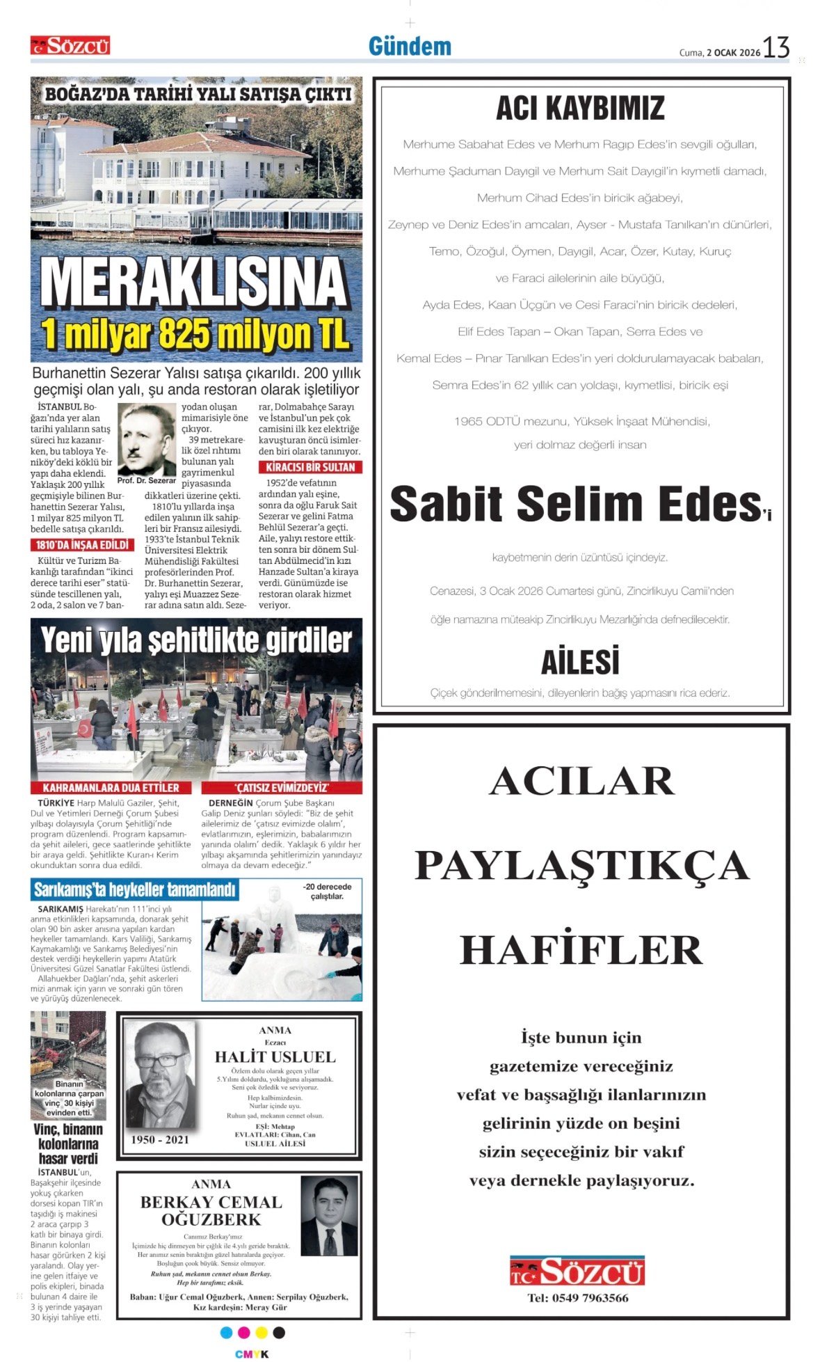 Sözcü Bugünkü Vefat İlan- Başsağlığı İlanı- Anma İlanları ve Arşiv Sayfalar. 2.1.2026