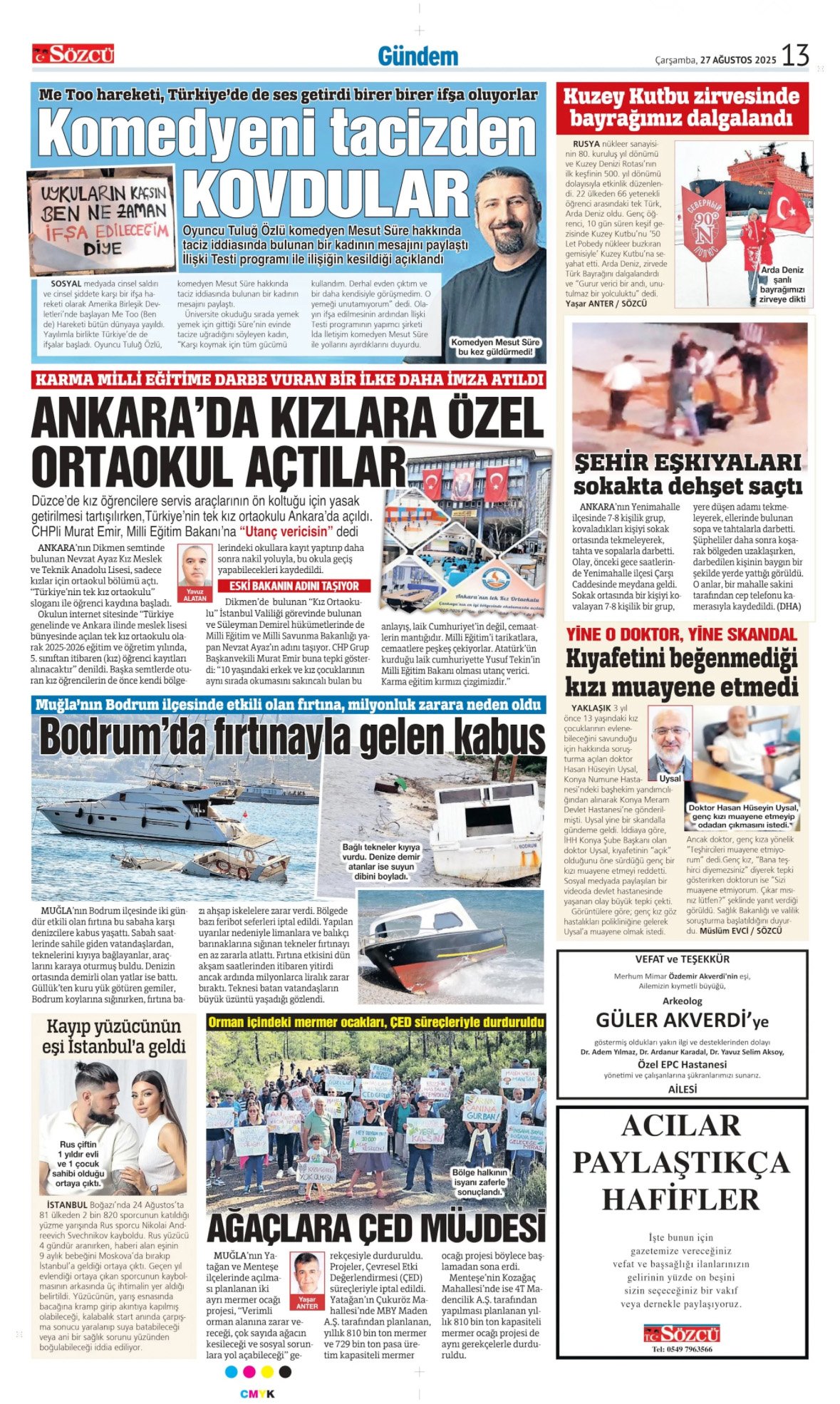 Sözcü Bugünkü Vefat İlanlar 27.8.2025;