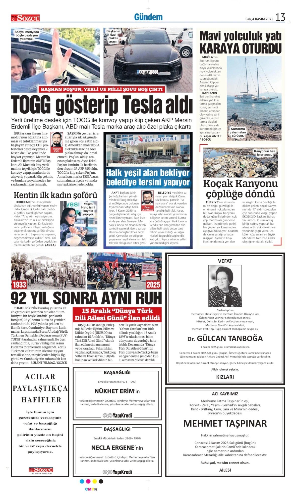 Sözcü Bugünkü Vefat İlan- Başsağlığı İlanı- Anma İlanları ve Arşiv Sayfalar. 4.11.2025