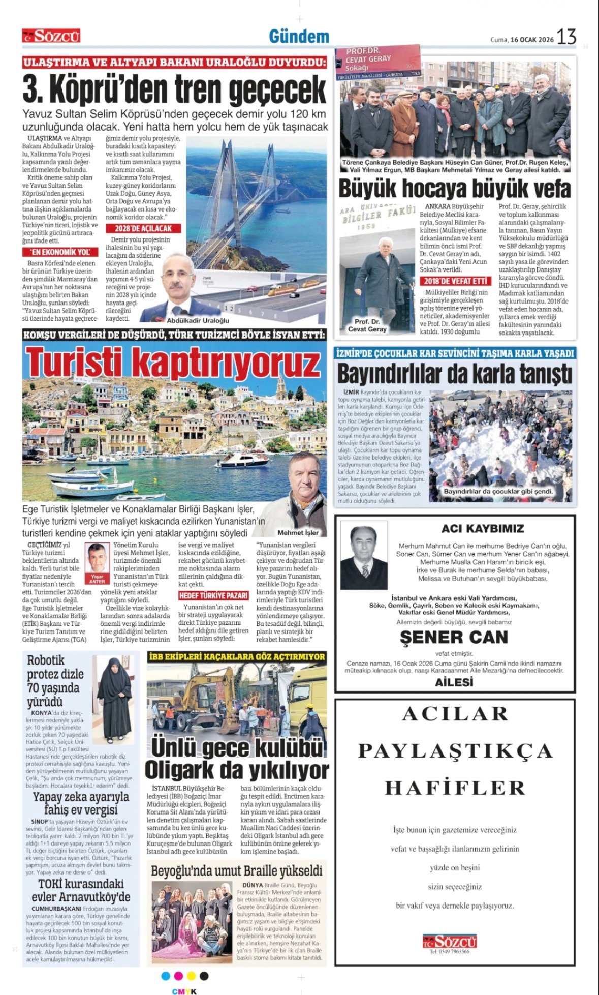 Sözcü Bugünkü Vefat İlan- Başsağlığı İlanı- Anma İlanları ve Arşiv Sayfalar. 16.1.2026