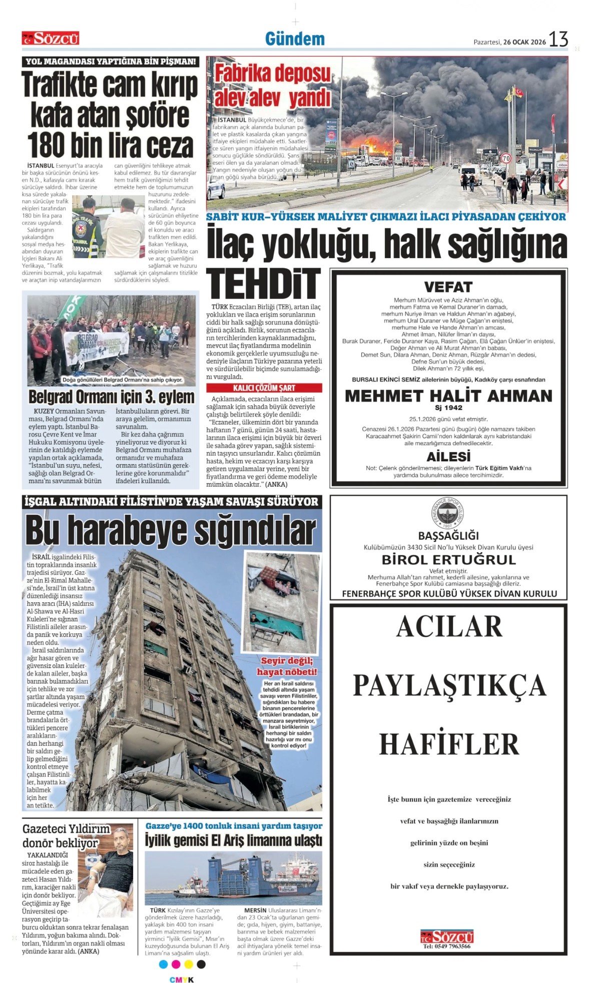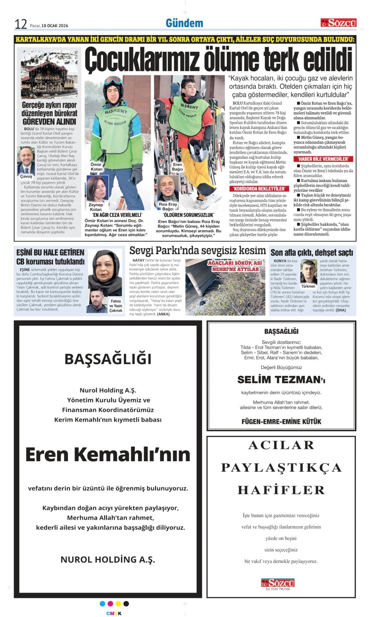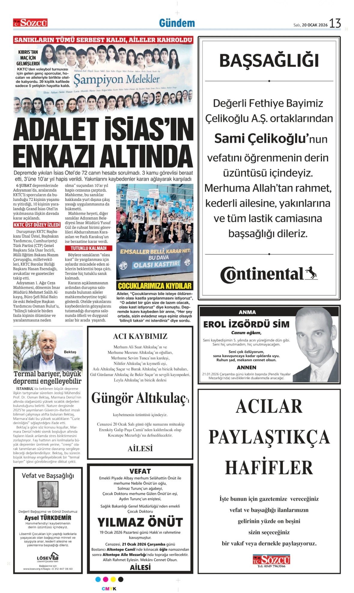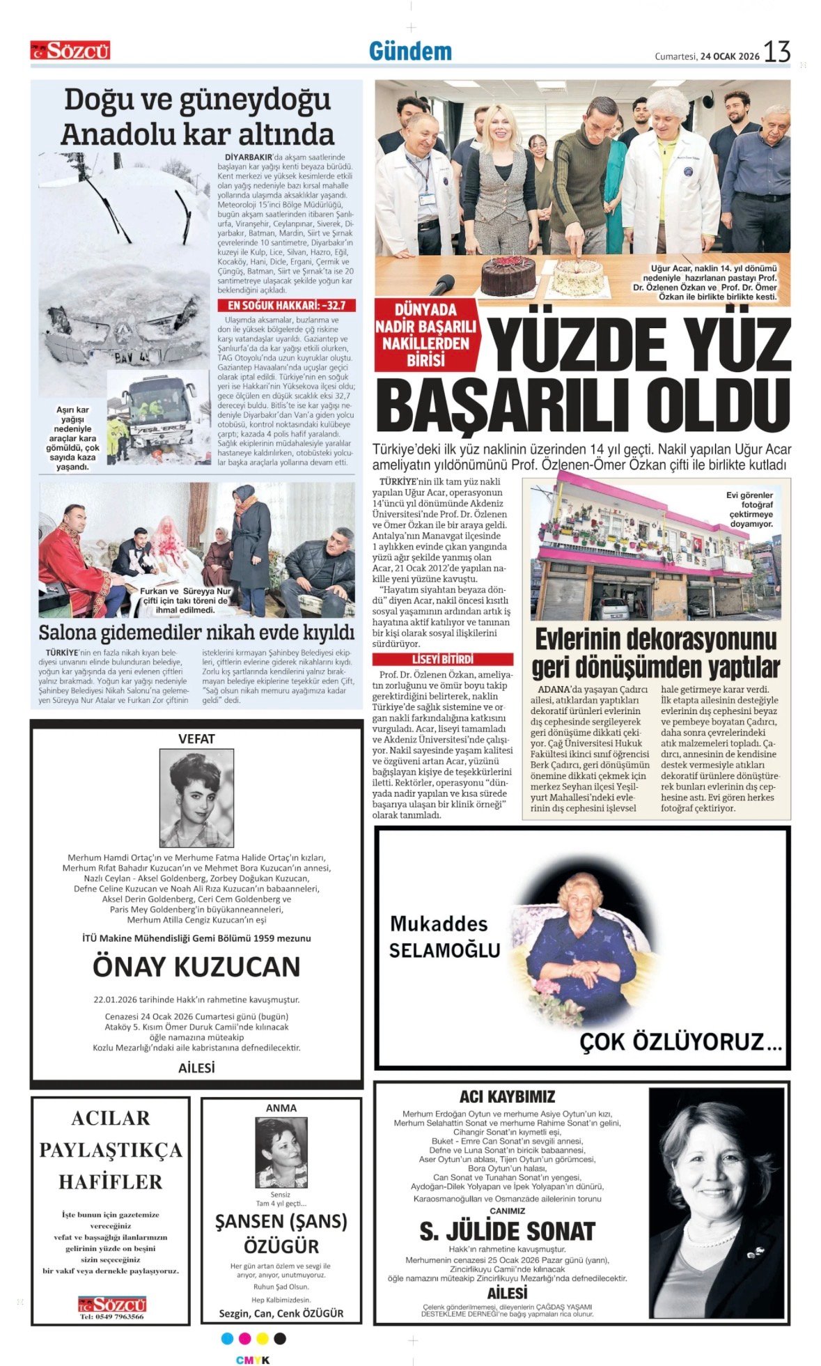 Sözcü Bugünkü Vefat İlan- Başsağlığı İlanı- Anma İlanları ve Arşiv Sayfalar. 15.1.2026