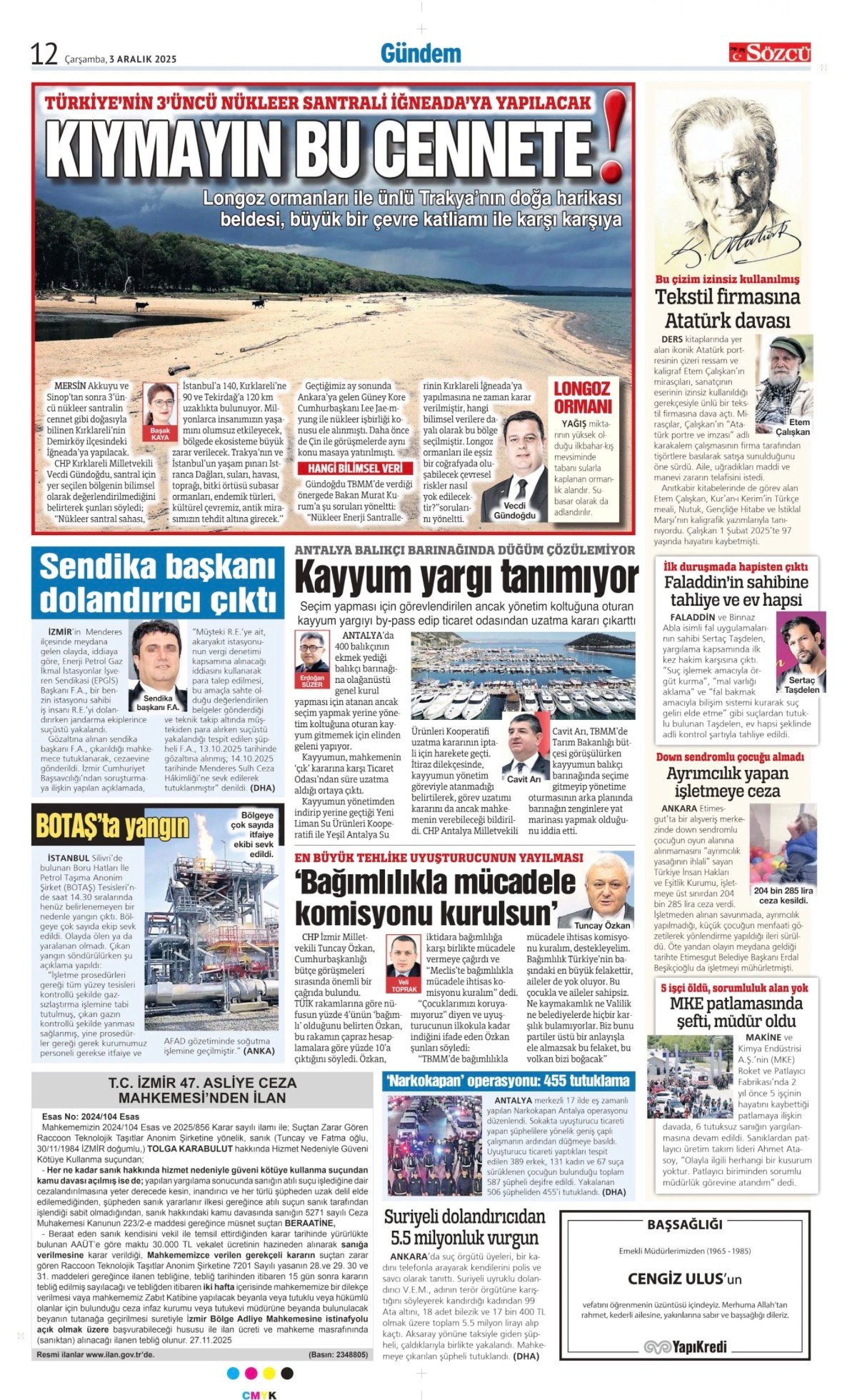 Sözcü Bugünkü Vefat İlan- Başsağlığı İlanı- Anma İlanları ve Arşiv Sayfalar. 5.12.2025
