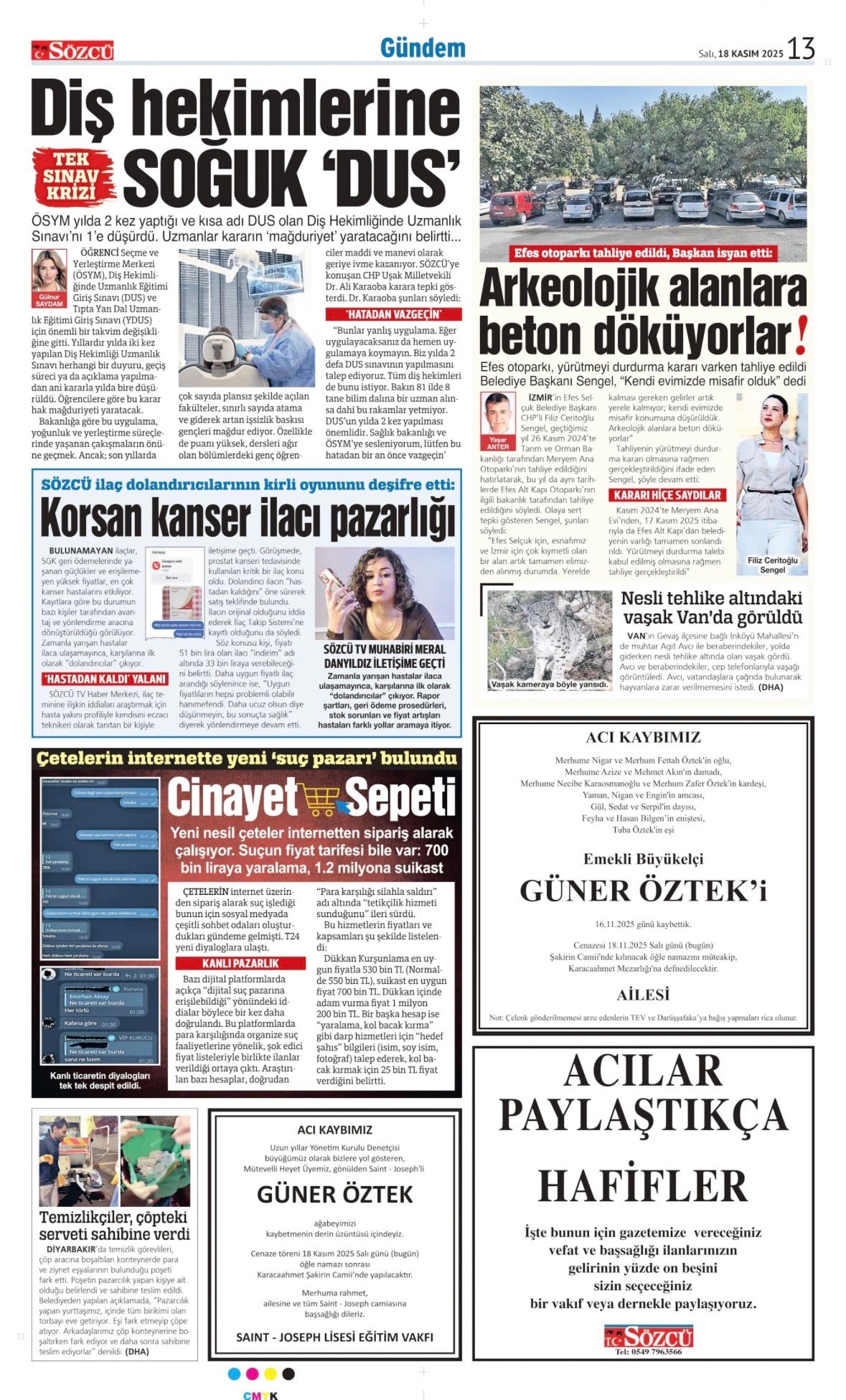 Sözcü Bugünkü Vefat İlan- Başsağlığı İlanı- Anma İlanları ve Arşiv Sayfalar. 18.11.2025