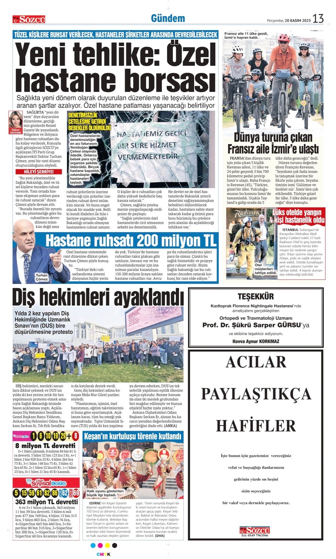 SÖZCÜ TEŞEKKÜR İLANLARI;