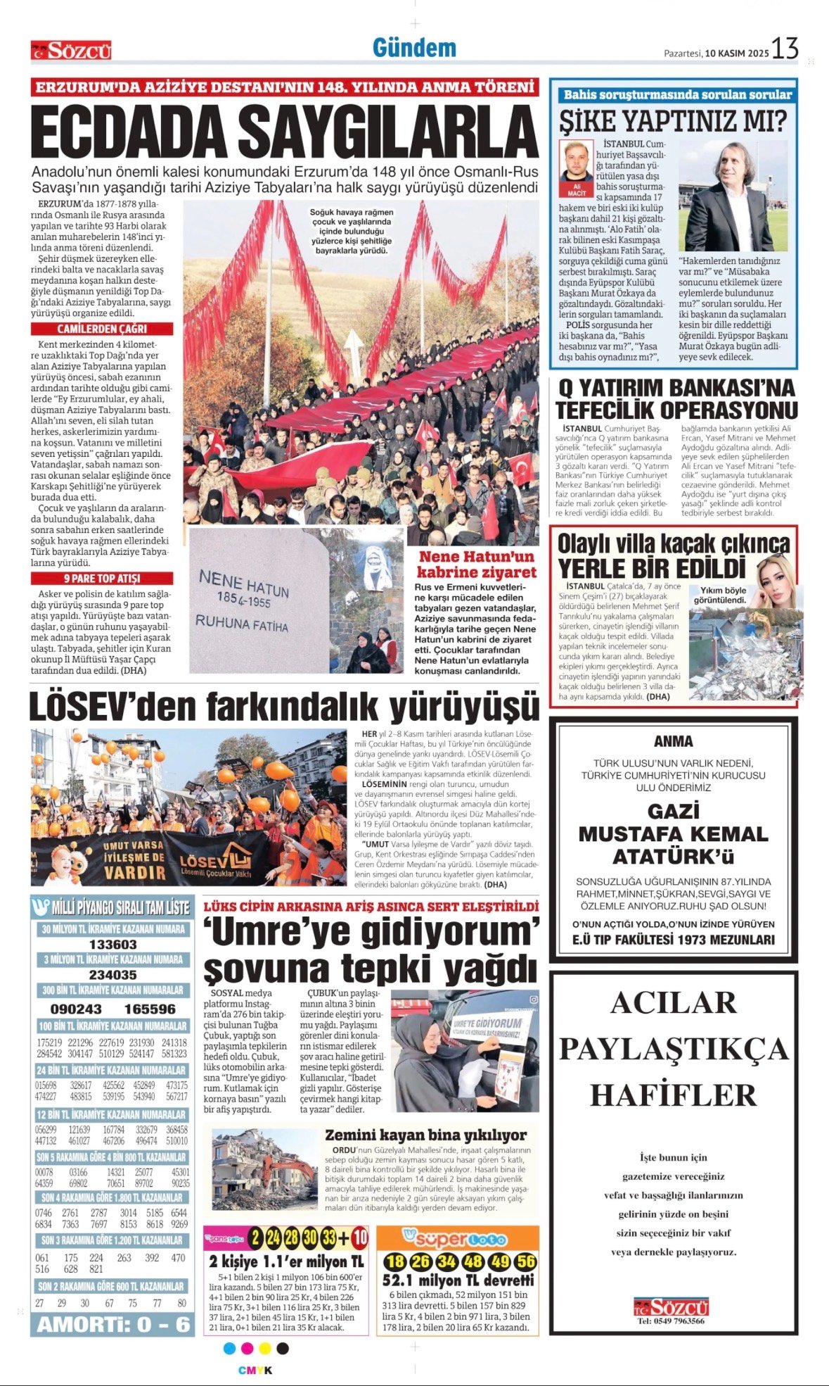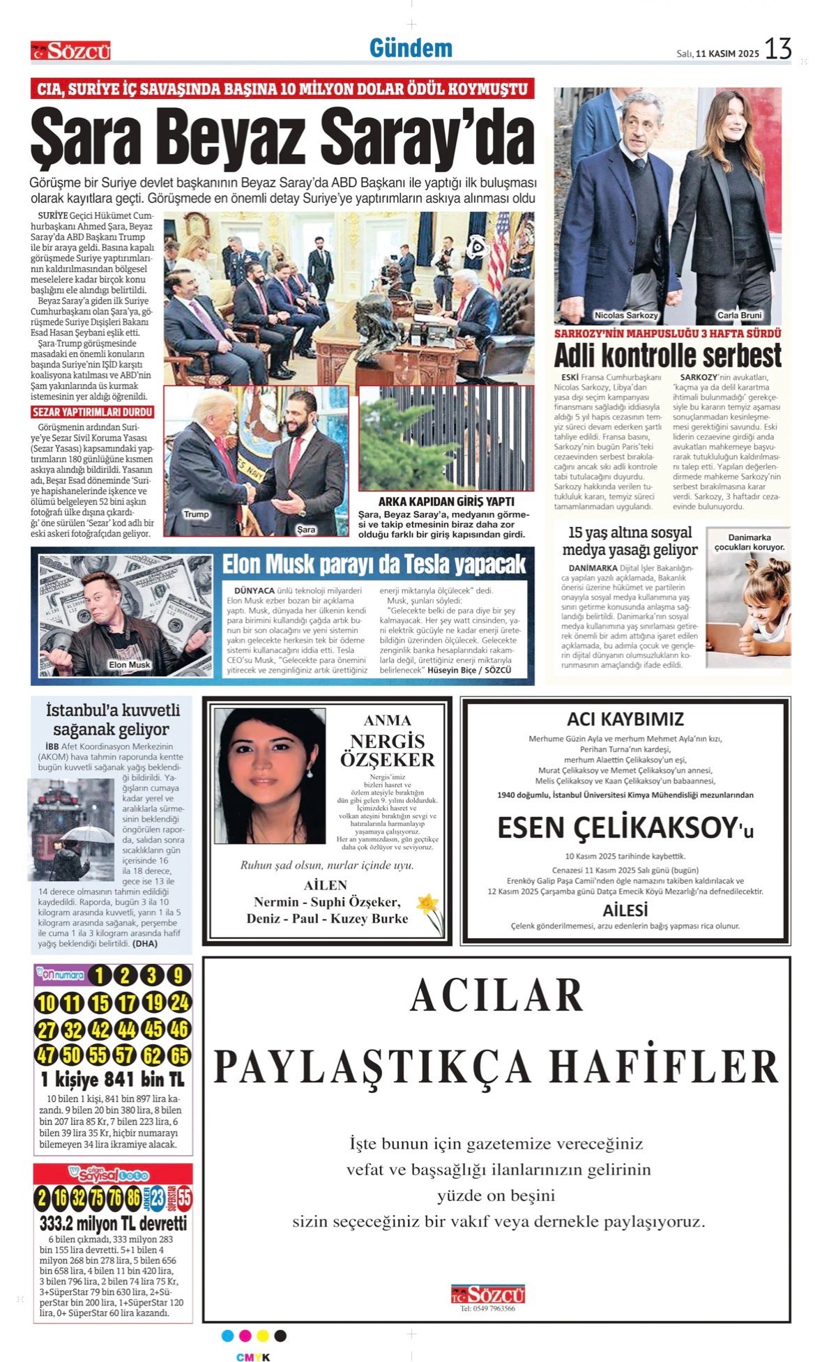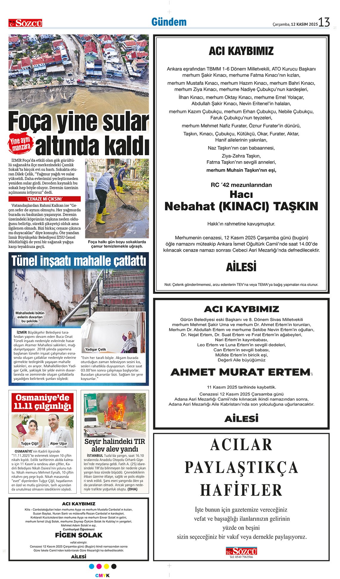 Sözcü Bugünkü Vefat İlan- Başsağlığı İlanı- Anma İlanları ve Arşiv Sayfalar. 11.11.2025