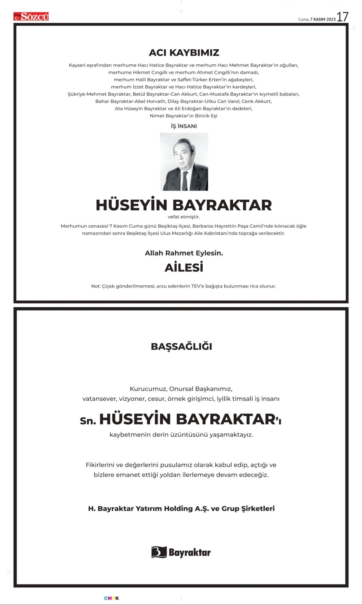 Sözcü Bugünkü Vefat İlan- Başsağlığı İlanı- Anma İlanları ve Arşiv Sayfalar. 8.11.2025